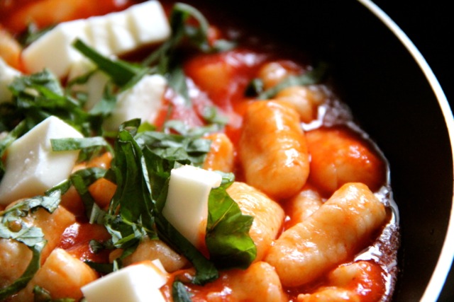 Ricotta Gnocchi with Basil and Fresh Mozzarella: “I started watching cooking shows on television at a young age, before Food Network (and man that makes me feel old). One of my early favorites was Mario Batali’s Molto Mario. I can still hear the perky operatic music at the intro… can you? If you can, you just might be my soul mate. But I digress just a tad. That happens sometimes.
