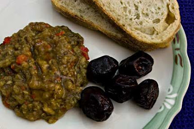 Last night I decided to use two stuffed eggplants left over from the Imam Baildi we had last week. The flavors I had to work with were well-cooked eggplant with onions, parsley, and tomatoes. I thought about using the mixture as a filling for filo pastry, or for soup, or as the basis for a sauce, but decided I was in the mood for Melitzanosalata, the eggplant spread Greeks call Eggplant Salad.