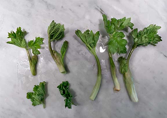 Washed cow parsnip ready for trimming tough or damaged stems, leaves, roots. Photograph by Laurie Constantino